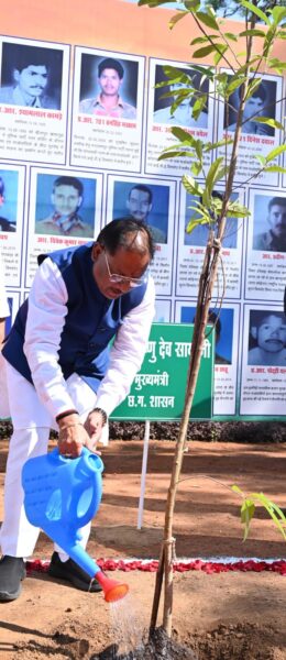 इस अवसर पर केंद्रीय गृह मंत्री श्री शाह ने एक पेड़ शहीदों के नाम अभियान अंतर्गत वृक्षारोपण किया। उन्होंने परिसर में पीपल का पौधा रोपा। मुख्यमंत्री श्री विष्णु देव साय ने भी परिसर में शहीदों की स्मृति में रुद्राक्ष का पौधा लगाया।