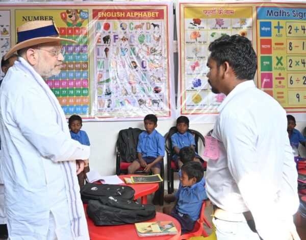 रायपुर / माओवादी आतंक से प्रभावित बीजापुर जिले के गुण्डम गांव में केन्द्रीय गृह मंत्री श्री अमित शाह ने महुआ पेड़ के नीचे चौपाल लगाकर ग्रामीणों से आत्मीयतापूर्वक खुलकर चर्चा की। उन्होंने कहा कि प्रधानमंत्री श्री नरेन्द्र मोदी की पहल पर हमने माओवादी आतंक को 31 मार्च 2026 तक समाप्त करने का लक्ष्य रखा है, जिसका परिणाम है कि आज नक्सलवाद एक छोटे से दायरे में सिमट कर रह गया है। इस मौके पर मुख्यमंत्री श्री विष्णुदेव साय एवं उपमुख्यमंत्री श्री विजय शर्मा उपस्थित थे।