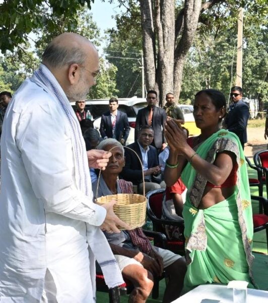 बीजापुर के गांव गुण्डम में महुआ पेड़ के नीचे केन्द्रीय गृह मंत्री ने लगाई चौपाल: ग्रामीणों से खुलकर की चर्चा