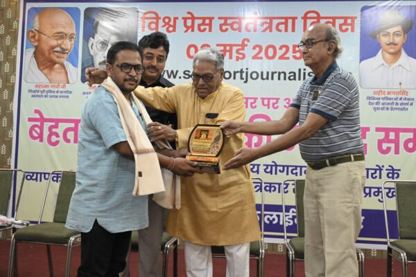 कार्यक्रम संयोजक श्री रथ ने बताया कि बेहतर पत्रकारिता की उम्मीद सम्मान 2025 से आलोक शुक्ला पहल, उचित शर्मा टीआरपी, देवेंद्र गुप्ता मोर छत्तीसगढ़, राहुल गोस्वामी स्वतंत्र बोल, उचित शर्मा महासमुंद डायरी, सत्येंद्र सिंह राजपूत फोर्थ आई, दिनेश कुमार सोनी हाइवे क्राइम्स, सैयद सलमा वैदिक, सागर फ़रिकार नवभारत छायाकार व अन्य को सम्मानित किया गया इसके अलावा प्रदेश के पत्रकार संगठनों के अध्यक्ष/महासचिव को भी विश्व प्रेस स्वतंत्रता दिवस पर सम्मानित किया गया। जिसमें सभी संभागों से पत्रकार शामिल हुए।कार्यक्रम के मुख्य अतिथि आसिफ इकबाल ने अपने उद्बोधन में पत्रकारिता के अनुभव के साथ खबर बनाते समय विशेष ध्यान रखने वाले प्रमुख बातों को साझा किया । विशिष्ठ अतिथि परदेशी राम वर्मा ने साहित्य और समाचार पत्रों के रिश्ते पर अपना व्यक्तव्य देते हुए पत्रकारिता में अपनी पहचान बनाने वाले रम्मू श्रीवास्तव, राजनारायण मिश्र जैसे नामी पत्रकारों के साथ अपने अनुभव को साझा किया। कार्यक्रम के समापन में आभार व्यक्त करते हुए आलोक शुक्ला ने राष्ट्रीय पत्रकारिता से डिजिटल पत्रकारिता के अपने अनुभव को साझा किया और ऐसे कार्यक्रमो को आज की जरूरत बताया। शनिवार शाम अचानक तेज बारिश और मौसम में बदलाव के बावजूद कार्यक्रम में बड़ी संख्या में दूर दूर से आए पत्रकारों ने भागीदारी की।विश्व प्रेस स्वतंत्रता दिवस के अवसर पर आयोजित सम्मान समारोह में शिव दत्ता, पुष्पेंद्र सिंह, शुभम वर्मा, अब्दुल शमीम, प्रतीक बेहरा, संस्कार तम्बोली, नितिन लॉरेन्स, यासीन खान, अनुपम वर्मा का विशेष योगदान रहा।