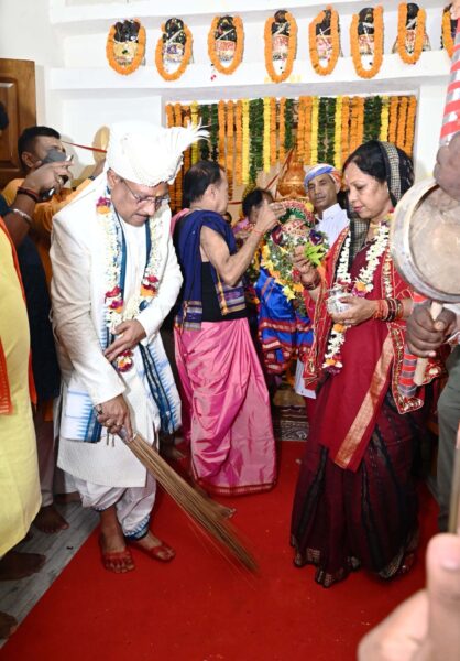 रायपुर, 27 जून 2025/ जशपुर ज़िले के ऐतिहासिक एवं प्राचीन श्री जगन्नाथ मंदिर दोकड़ा में इस वर्ष भी रथयात्रा महोत्सव का आयोजन परंपरागत श्रद्धा, भक्ति और भव्यता के साथ किया गया। मंदिर से रथ यात्रा के रवाना होने से पहले मुख्यमंत्री श्री विष्णुदेव साय एवं उनकी धर्मपत्नी श्रीमती कौशल्या देवी साय ने जगन्नाथ मंदिर में पूरे विधि-विधान से भगवान श्री जगन्नाथ, भाई बलभद्र एवं बहन सुभद्रा की पूजा-अर्चना कर प्रदेशवासियों के सुख, समृद्धि और कल्याण की मंगलकामना की। मुख्यमंत्री श्री विष्णुदेव साय ने झाडू से रथयात्रा के मार्ग को बुहारकर छेरा-पहरा की रस्म निभाई।