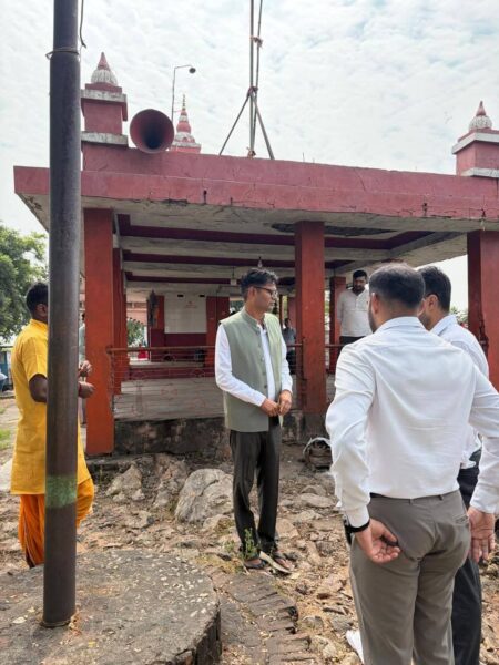 रायपुर, 23 अक्टूबर 2025/ प्रदेश के वित्त मंत्री श्री ओ.पी.चौधरी ने रायगढ़ के गजमार पहाड़ स्थित प्रसिद्ध हनुमान मंदिर परिसर में जारी सौंदर्यीकरण एवं अन्य विकास कार्यों का निरीक्षण किया। इस दौरान उन्होंने निर्माण कार्यों की प्रगति की विस्तृत समीक्षा की और संबंधित अधिकारियों को आवश्यक दिशा-निर्देश भी दिए। इस अवसर पर कलेक्टर रायगढ एवं डीएफओ रायगढ़ उपस्थित रहे।