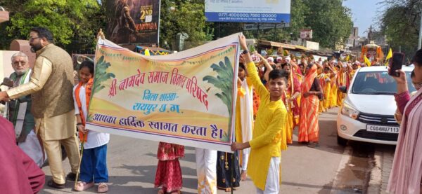 जैसा कि आपको विदित है कि हर वर्ष की तरह श्री नामदेव समाज विकास परिषद जिला शाखा द्वारा नामदेव जयंती का कार्यक्रम होता है। उसी प्रकार इस वर्ष भी 755वी*जयंती को भक्तिमय एवं हर्षोल्लास के साथ लगातार नौ दिनों तक मना रहे है इसी क्रम में प्रथम दिवस आज 1.11.2025 को देवउठनी एकादशी के अत्यंत ही पावन अवसर पर संत शिरोमणि श्री नामदेव जी महाराज की 755 भी जयंती रायपुर के VIP रोड स्थित खनिज नगर, मौली श्री विहार स्थित, शिव, विट्ठल एवं श्री नामदेव मंदिर में बड़े धूमधाम से मनाई गईl श्री नामदेव समाज विकास परिषद जिला शाखा द्वारा यह कार्यक्रम आयोजित किया जा रहे हैं इसी क्रम में आज दूसरे दिन आज सुबह बूड़ा तालाब गणेश मंदिर से ढोल धमाके के साथ कलश यात्रा निकाली और यह कलश यात्रा शहर में घूमते हुए दत्तात्रेय मंदिर बुढ़ापारा पहुंची वहां पहुंचकर पूजा अर्चना की और नामदेव महाराज की आरती की गई इसके बाद प्रसाद वितरण किया गया इस कलश यात्रा में छत्तीसगढ़ बाल अधिकार संरक्षण आयोग की अध्यक्ष श्रीमती डॉक्टर वर्णिका शर्मा एवं श्री परम पूज्य श्री राजेश्वरानंद जी महामंडलेश्वर एवं श्री हरि बल्लभ अग्रवाल जी दत्तात्रेय मंदिर अध्यक्ष जी नामदेव समाज की कलश यात्रा में शामिल हुए इस कलश यात्रा में सैकड़ो महिलाओं ने अपने सिर के ऊपर कलश रखकर एवं पीले वस्त्र पहनकर शोभा बढ़ाई एवं समाज के वरिष्ठ लोग और नव युवा युवतियो ने बच्चों ने इस कलश यात्रा मे सम्मिलित होकर अपने इस कार्यक्रम को सफल बनाया। आज की इस कल से यात्रा में समाज के सभी स्वजन बंधुओ एवं सभी महिलाओं ने बढ़ चढ़कर हिस्सा लिया साथ ही बच्चों ने भी भरपूर आनंद लिया।