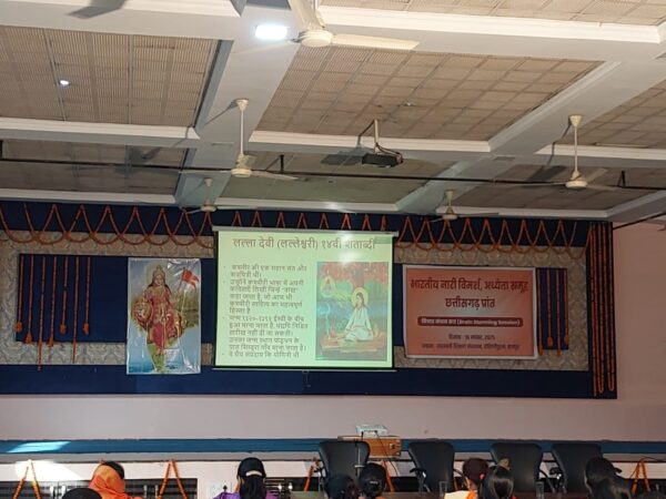 भारत मे वैदिक कालीन स्त्री चेतना पर कबीरधाम से आईं श्रीमती नम्रता मोदी ने प्रस्तुति दी। श्रीमती गगन गोयल, नीता मिश्रा, कोंडागांव, गरियाबंद की विनीता शर्मा, सरोज देवांगन ने पॉवर पॉइंट प्रेजेंटेशन के माध्यम से विभिन्न कालखण्डों में स्त्रियों की दशा पर प्रकाश डाला।