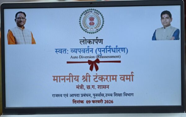 रायपुर 9 फरवरी 2026/मुख्यमंत्री श्री विष्णुदेव साय के नेतृत्व में छत्तीसगढ़ में डिजिटल गवर्नेंस को और अधिक सशक्त बनाते हुए आज नागरिक सुविधा के क्षेत्र में दो महत्वपूर्ण और अभिनव पहल का शुभारंभ किया गया। राजस्व मंत्री श्री टंकराम वर्मा ने अपने निवास कार्यालय में भुइयां व्हाट्सऐप चैटबॉट सेवा तथा ऑटो-डाइवर्ज़न (पुनर्निर्धारण) सुविधा का औपचारिक राज्यव्यापी शुभारंभ किया। ये दोनों डिजिटल पहल राज्य में ई-गवर्नेंस, पारदर्शिता और नागरिक-केंद्रित प्रशासन की दिशा में एक बड़ा कदम हैं। इन सेवाओं के माध्यम से नागरिकों को अब राजस्व संबंधी सेवाओं के लिए कार्यालयों के चक्कर नहीं लगाने पड़ेंगे और कार्यवाही पूरी तरह सरल, तेज़ और पारदर्शी होगी।
